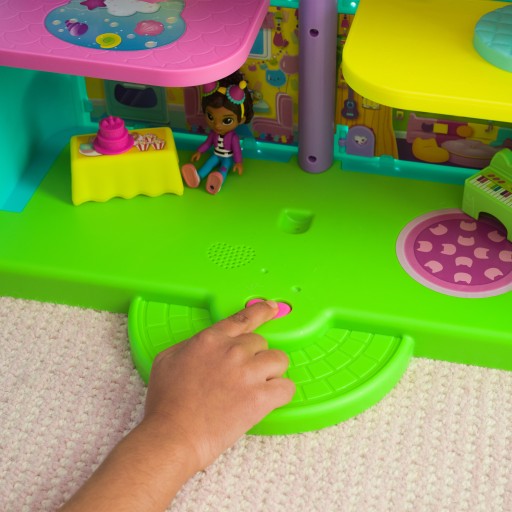 Skorzystaj z Cat-A-Vatora, aby odkryć 6 różnych pokoi, odwróć dach, aby odsłonić ukryty strych na najwyższym piętrze, i naciśnij przycisk, aby usłyszeć 6 efektów dźwiękowych i melodii z serialu.
