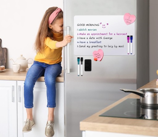 ✔️ To innowacyjne rozwiązanie, które dostosowuje się do każdego kształtu lodówki, tworząc funkcjonalną przestrzeń do notatek i organizacji. Czarna, magnetyczna strona tablicy idealnie przylega do powierzchni lodówki, zapewniając stabilność, natomiast biała strona stanowi doskonałe miejsce do zapisywania ważnych informacji, list zakupów czy inspirujących cytatów.