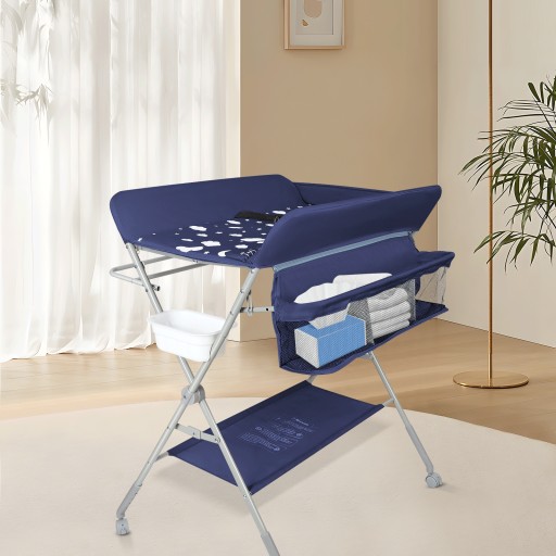 - Materiał: Metalowe rurki do wzmocnionych nóg podporowych i stojaków na kosze wykonane są z żelaza. Powyższy przewijak jest wykonany z delikatnej tkaniny Oxford.