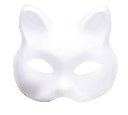 Maska wykonana z plastiku w kolorze białym w kształcie kota.