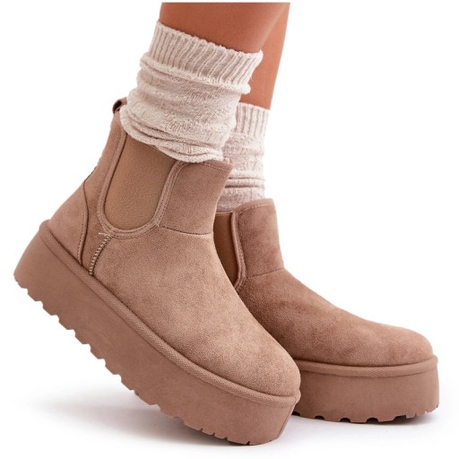 Śniegowce Damskie Na Platformie Z Elastycznymi Wstawkami Ciemnobeżowe Rialine - rozmiar 37