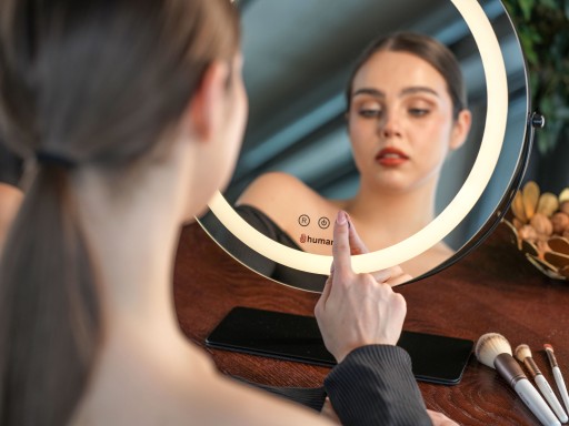 Lustro Humanas HS-HM Scarlet pomoże Ci wykonać perfekcyjny makijaż w niemal każdych warunkach. Panel LED okalający taflę szkła zapewni równomierne oświetlenie twarzy, ułatwiając precyzyjne nakładanie kosmetyków. Krzywe kreski, nierównomiernie rozprowadzony puder czy niedoskonale poprowadzony kontur oczu i ust przestaną być problemem. Możliwość regulacji położenia lustra w zakresie 360º to kolejny atut, który ułatwi wykonywanie makijażu. W zależności od potrzeb możesz ustawić pożądany poziom podświetlenia oraz wybrać jeden z 3 wariantów temperatury barwowej światła. Metalowe wykończenie w czarnym kolorze idealnie sprawdzi się zarówno w domu, jak i w studiu wizażu.