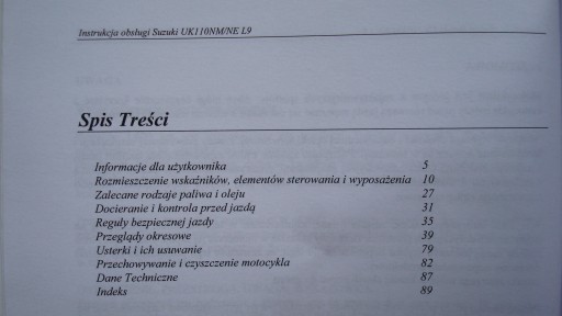 SUZUKI UK 110NM Руководство пользователя на польском языке Suzuki Address UK110 NM/NE 2019