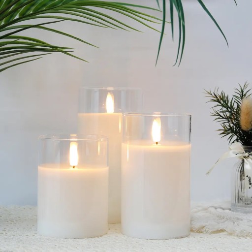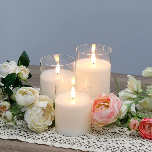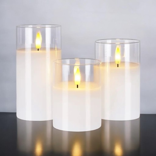 Zestaw 3 świeczek dekoracyjnych z migającym stałym knotem imitującym prawdziwy płomień za pomocą diody LED. Świeczkę można wykorzystać jako wkład do tradycyjnych zniczy. Świeci znacznie dłużej niż zwykłe wkłady oraz jest odporna na wiatr, co jest dodatkową zaletą.