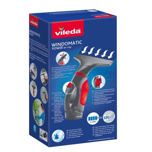 Elektryczna myjka do okien Vileda posiada ruchomą głowicę, która zapewnia idealne dotarcie ściągaczki do czyszczonych powierzchni. Elastyczna głowica Windomatic Power zapewnia ponadto precyzyjne dotarcie do rogów i krawędzi już przy pierwszym zasysaniu.