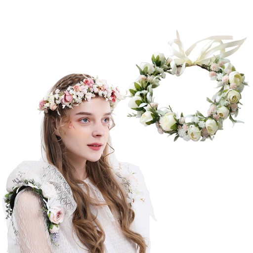 2xFlower Pałąk Panna Młoda Z Regulowaną Wstążką Na Ślub Beżowy