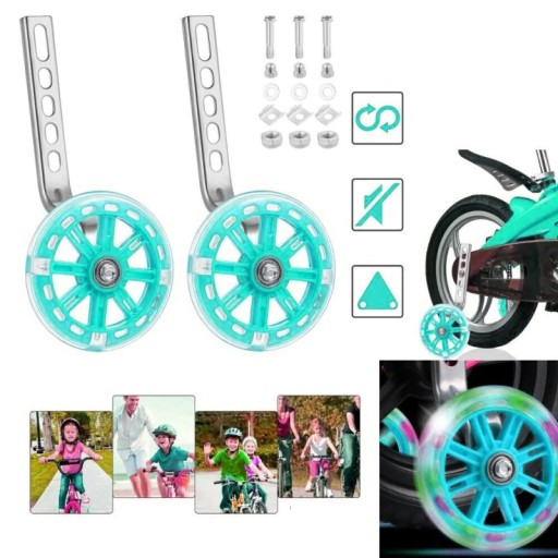 БОКОВЫЕ КОЛЕСА ДЛЯ ДЕТСКОГО ВЕЛОСИПЕДА КОЛЕСА С ОСВЕЩЕНИЕМ + НАПРАВЛЯЮЩИЕ ДЛЯ ВЕЛОСИПЕДА