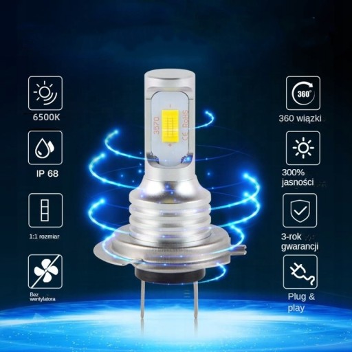 - Typ LED: Dwustronna żarówka LED z chipem COB