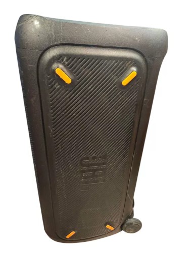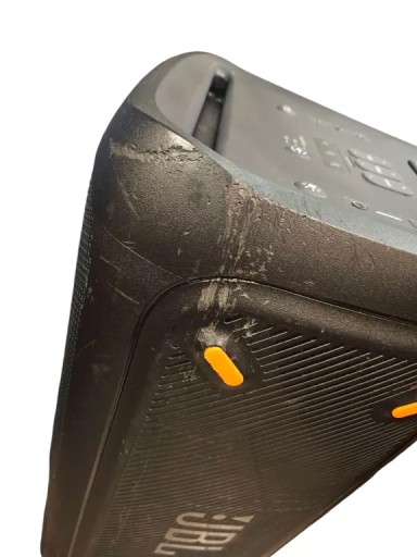 Głośnik nosi widoczne ślady użytkowania w postarci zarysowań i głębokich otarć, głównie na rogach obudowy, zostało to pokazane na zdjęciach.