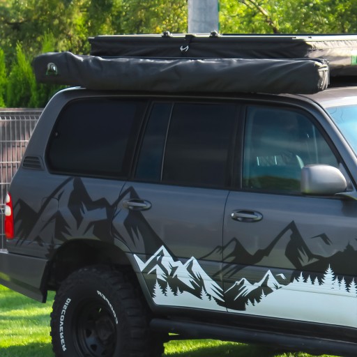 Tak szeroka osłona chroni przed słońcem i deszczem, pozwalając na łatwy dostęp do bagażnika oraz innych części samochodu, takich jak zabudowa kuchenna, co jest szczególnie ważne podczas dłuższych podróży lub kempingów.