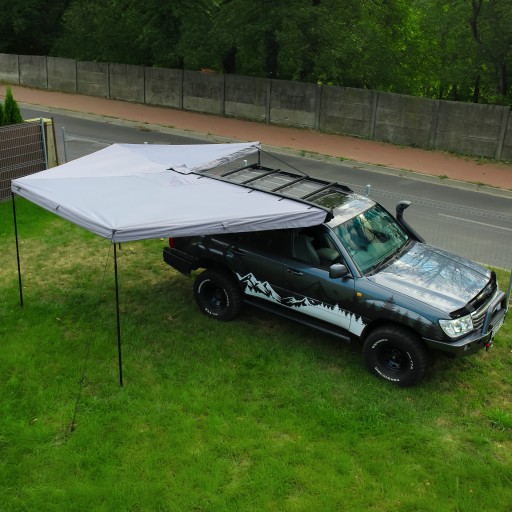Konstrukcja markizy opiera się na wytrzymałych profilach aluminiowych, które są jednocześnie lekkie i trwałe. Dzięki swojej innowacyjnej konstrukcji i dużej rozpiętości ramion, markiza ta znacząco zwiększa funkcjonalność przestrzeni wokół samochodu