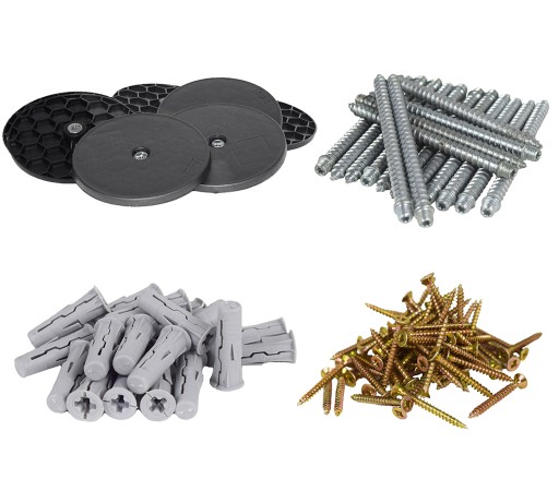 - 84 szt. wkręty stalowe do mocowania płyt do talerzyków łączników o średnicy 3,5 mm (4 szt. na talerz).