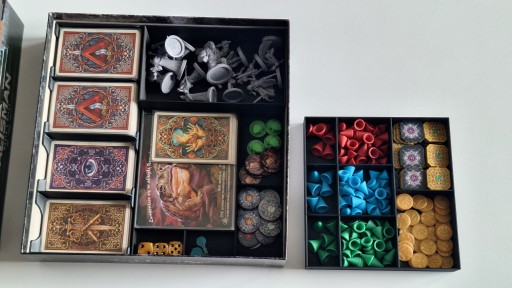 Dodatkowo insert jest zarazem zestawem podajników, które bardzo przyśpieszają przygotowanie gry, oraz ulatwiają używanie kart, znaczników itp. podczas samej rozgrywki.