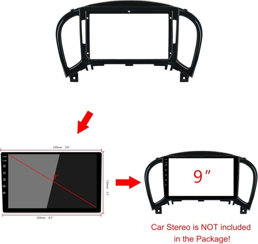 EZoneTronics 9-calowa specjalna ramka stereo radia samochodowego do Nissan Juke 2011-2016 Double Din 60-039
