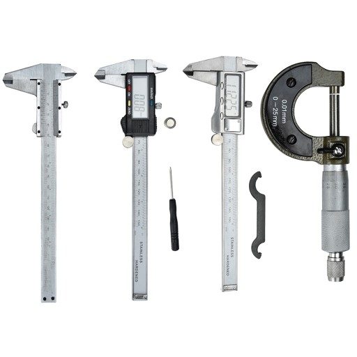 Mierzy wymiar zewnętrzny (OD), wymiar wewnętrzny (ID), stopień i głębokość (gdy dołączony jest pasek głębokości)