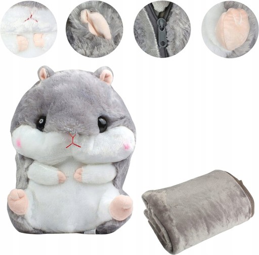 ⭐⭐Koc chomik kocyk poduszka maskotka kocyk Zestaw 3w1 Przytulanka Koc Komunia⭐⭐