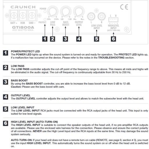 Активный сабвуфер Crunch GTI800A, 20 см, 200 Вт, среднеквадратичный мягкий бас, Hi-вход