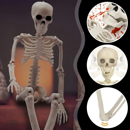 ✔️Wszechstronność✔️Dzięki ruchomym elementom, szkielet można dostosować do różnych scenerii i motywów, co czyni go uniwersalną dekoracją na Halloween lub inne tematyczne wydarzenia.