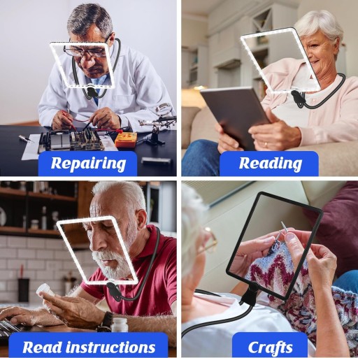 ☑️ Elastyczna gęsia szyja pozwala uwolnić ręce. Obiektyw możesz ustawić pod dowolnym kątem, nie martwiąc się o jego stabilność. Ta lupa do czytania doskonale nadaje się na prezent dla osób słabowidzących lub słabowidzących, mogą czytać, haftować, szyć, naprawiać, wykonywać rękodzieło i wykonywać inne czynności bez patrzenia w dół, idealne do długotrwałego użytkowania.