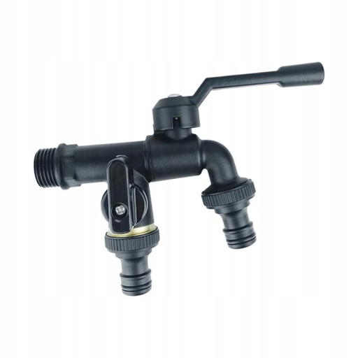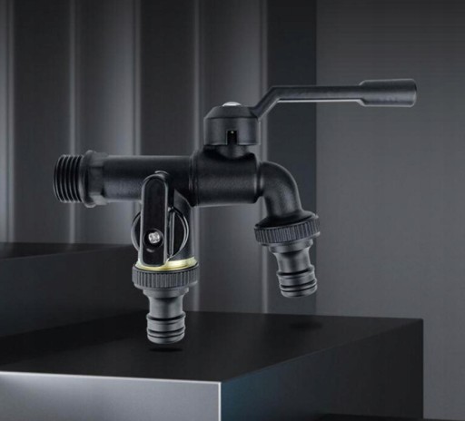 Ten kran z podwójnym wylotem umożliwia jednoczesne podłączenie dwóch węży, co czyni go niezwykle wygodnym w przypadku wielozadaniowości.