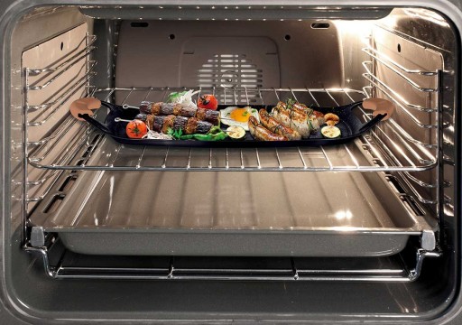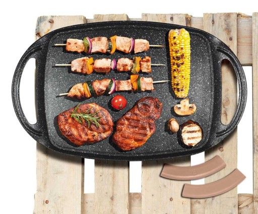 Płyty grillowej można używać zarówno na kuchence jak i w piekarniku. Silikonowe uchwyty są odporne na temperaturę do 220 st. C. Płyta umożliwi przygotowanie grillowanych dań bez konieczności dodawania tłuszczu.