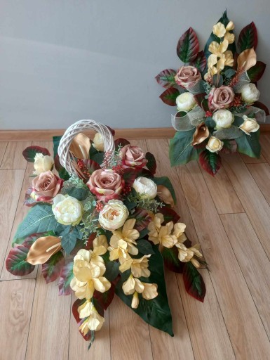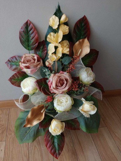 (cena dotyczy kompozycji do postawienia na grobie, na innej aukcji można zakupić komplet czyli stroik + bukiet do wazonu razem)