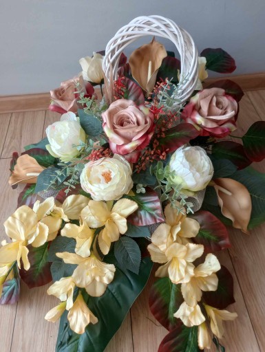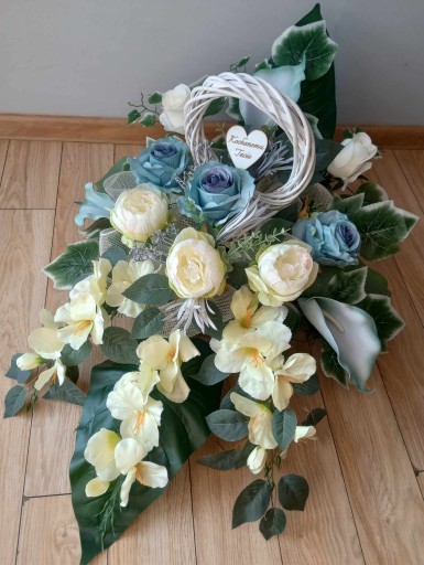 SZTUCZNY STROIK KWIATÓW NA GRÓB Z KOŁEM WIKLINOWYM