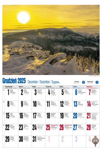 KALENDARZ A3 2025 ŚCIENNY 13 PLANSZOWY NA SPIRALI POLSKIE KLIMATY