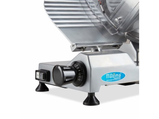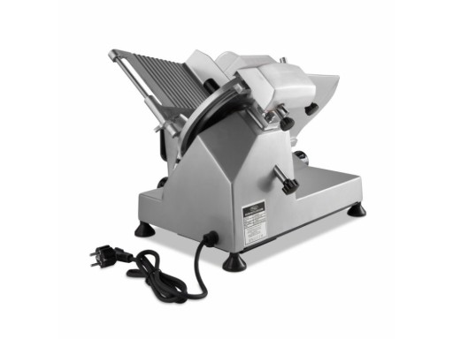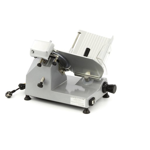 Ta profesjonalna krajalnica do mięsa wykonana z solidnej aluminiowej konstrukcji i wyposażona w hartowany nóż ze stali nierdzewnej o średnicy 220 mm. Ta krajalnica do mięsa jest bardzo cichą maszyną, dzięki czemu doskonale nadaje się do użytku w miejscach, w których również znajdują się klienci. Dzięki skośnemu montażowi urządzenie to jest bardzo przyjazne dla użytkownika.
