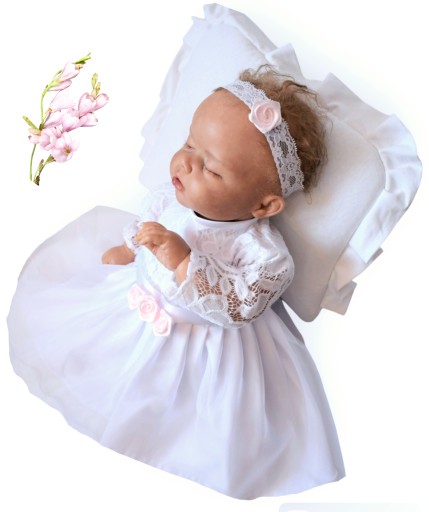 PIĘKNY BAWEŁNIANY KOMPLET DO CHRZTU SUKIENKA I OPASKA KORONKOWA