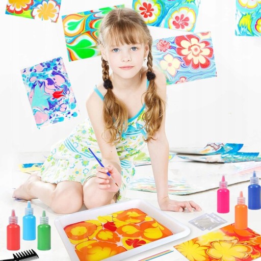 ⭐Farba do marmurkowania dla dzieci - rękodzieło dla dziewczynek i chłopców, zestawy do rękodzieła, idealne prezenty dla dzieci w wieku od 6 do 8-12 lat⭐