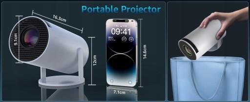 Mini projektor HY300 PRO z kablem do ładowania i obrotem o 180° jest przenośny i może być używany do różnych celów. (Wystarczy włożyć go do plecaka lub walizki podróżnej), np. podczas biwakowania, podróży czy imprez plenerowych. Dzięki niewielkim rozmiarom 10,08x10,35 cm i wadze netto 500 gramów idealnie nadaje się do podróży.