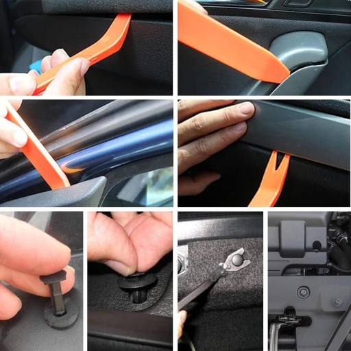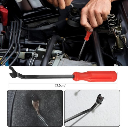 W zestawie znajdziesz również praktyczne narzędzie do usuwania klipsów, które ułatwi demontaż starych elementów bez uszkodzenia tapicerki czy innych części samochodowych.