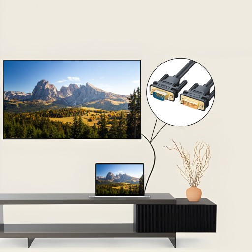 Łatwy w użyciu kabel umożliwiający połączenie urządzenia z portem DVI-I z monitorem z portem VGA, zapewniający pełną rozdzielczość 1080P Full HD. To proste rozwiązanie gwarantuje szybkie i skuteczne połączenie, umożliwiając korzystanie z wysokiej jakości obrazu na monitorze bez zbędnych komplikacji w obsłudze.