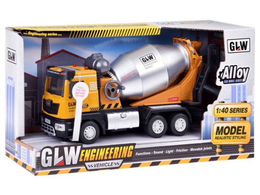 Betoniarka Samochód z dźwiękiem i światłem - to propozycja dla każdego małego budowlańca. Z taką betoniarką zabawa w małego budowniczego nabierze zupełnie nowego wymiaru! Samochód wykonany bardzo realistycznie, z zadbaniem o najdrobniejsze szczegóły. Auto zostało wyposażone w efekty dźwiękowe i świetlne, przez co zabawa nim zyskuje realistyczny wymiar. Pojazd posiada ruchomą beczkę, którą obraca się za pomocą korbki oraz otwieraną kabinę, aby zaglądnąć do silnika.