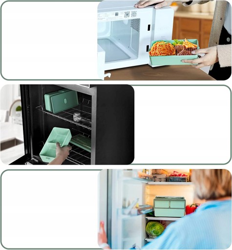 【BEZPIECZNY W UŻYCIU】 Plastikowe pudełko na lunch bento jest wykonane z materiałów przyjaznych dla środowiska, które można bezpiecznie podgrzewać w kuchence mikrofalowej i łatwo czyścić w zmywarce. Uwaga: Przed podgrzaniem należy wyjąć zastawę stołową (widelce i łyżki) z pojemnika przed podgrzaniem.
