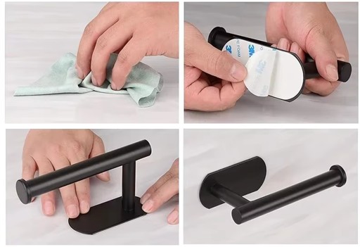 - Montaż za pomocą taśmy - usuń folię ochronną z taśmy samoprzylepnej i mocno dociśnij uchwyt do powierzchni. Poczekaj 24 godziny przed pierwszym użyciem, aby zapewnić maksymalną przyczepność.
