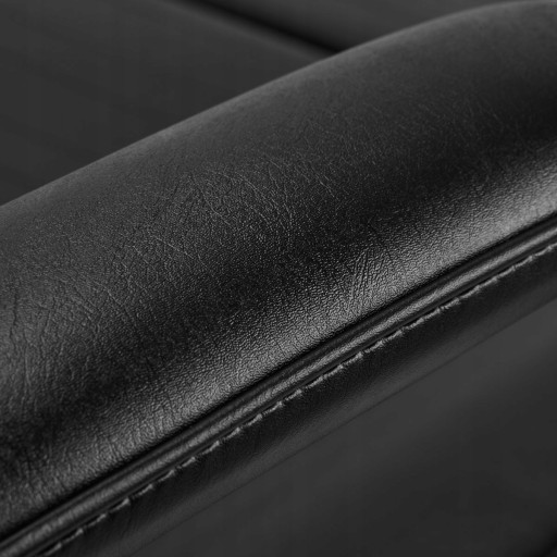 Fotel wypełniony jest pianką o odpowiedniej twardości i pokryty półmatową imitacją skóry w odcieniach czerni. Dzięki użyciu takiego materiału, sprzęt jest komfortowy w użytkowaniu, odporny na wilgoć oraz łatwy w czyszczeniu. Odpowiednio wyprofilowane obszycia nadają ergonomiczny kształt siedzisku. Solidna konstrukcja gwarantuje trwałość oraz stabilność. Prosty design i klasyczna kolorystyka pozwalają mu wpasować się w każde wnętrze.