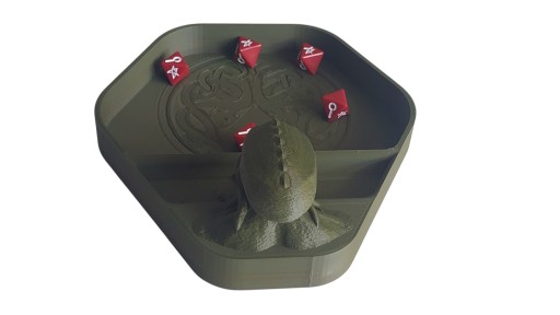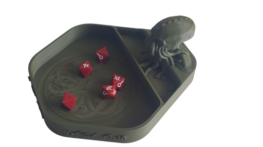 Oferuje wydruk Tacki na kości pasującą do gier planszowych z serii Cthulhu.Tacka jest mojego projektu wykonana w technologii druku 3D.