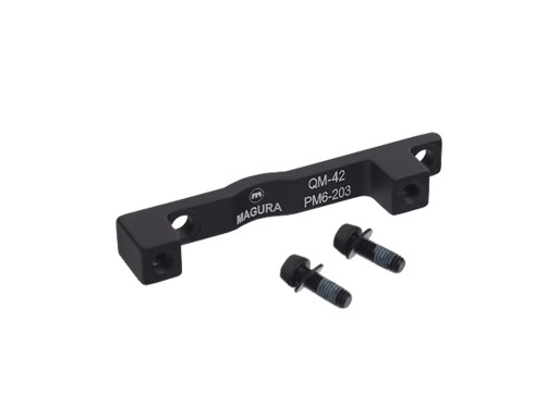 Oryginalny adapter zacisku niemieckiej firmy Magura. Model QM42 pozwala na montaż największej tarczy 203mm