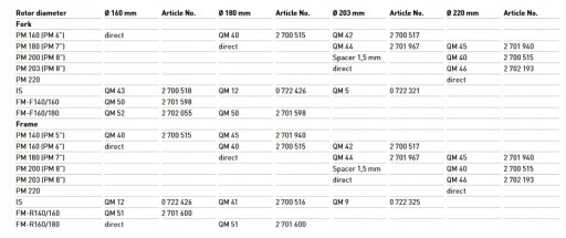 Mounting typePostmountMounting siteFork / chainstayBrake typeDisc brakesMounting areaCaliperRotor diameter203 mmPU1ModelQM 42ColorBlack