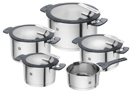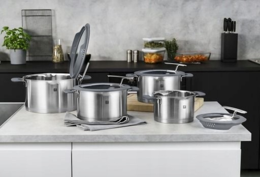 Jeśli szukasz naczyń kuchennych ze stali nierdzewnej o wysoce funkcjonalnym wzornictwie, to kolekcja Modern niemieckiego producenta Zwilling J. A. Henckels jest dla Ciebie. Jest to najwyższej jakości naczynie ze stali nierdzewnej z dnem typu sandwich, które już na pierwszy rzut oka zachwyca swoim charakterystycznym designem, w którym oprócz silikonowych uchwytów garnków dominują wielofunkcyjne szklane pokrywy. Garnki zostały wykonane z wysokiej jakości stali nierdzewnej 18/10 z pięknym matowym wykończeniem, które jest odporne na zarysowania i bardzo łatwe do utrzymania w czystości. Nowoczesne garnki to także oszczędność miejsca, ponieważ można je sztaplować, w prawdziwym tego słowa znaczeniu. Zajmują naprawdę minimalną ilość miejsca.