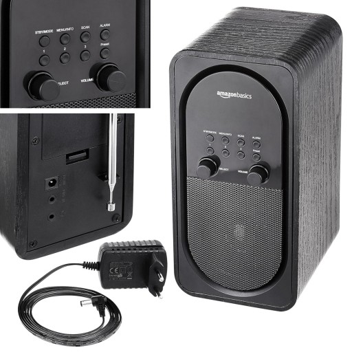 Kompaktowe przenośne radio DAB/FM Amazon Basics oferuje krystalicznie czysty dźwięk i jest wyposażone w wiele funkcji, które pomagają cieszyć się ulubioną muzyką i stacjami - niezależnie od tego, czy jesteś w domu, czy w podróży.