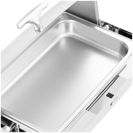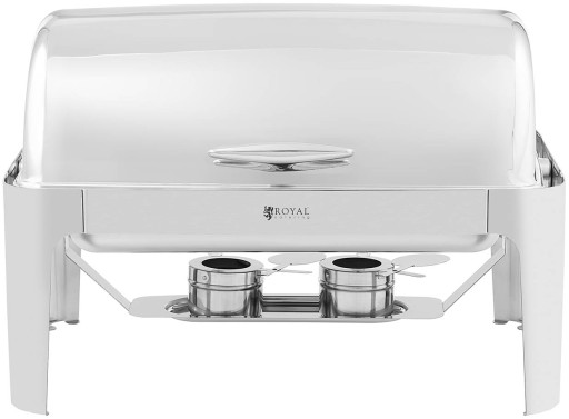 Podgrzewacz do potraw marki Royal Catering sprawdzi się w bufecie śniadaniowym w hotelach, restauracjach czy na imprezach cateringowych. Bemar wykonano ze stali nierdzewnej niewpływającej na smak jedzenia. Doskonale nadaje się do utrzymywania ciepła dużych ilości potraw i ich apetycznego wyeksponowania. Pojemność 8,5 l może obsłużyć wiele osób jednocześnie na dużych imprezach. Łatwy do wyjęcia pojemnik GN 1/1 o głębokości 65 mm ułatwia napełnienie naczynia świeżo ugotowaną zupą, sosem, chili con carne lub gulaszem warzywnym bezpośrednio z garnka. Podgrzewacz wykonany został z trwałej oraz odpornej na zarysowanie stali nierdzewnej i spełnia wysokie wymagania higieniczne branży gastronomicznej. Posiada także nienagrzewającą się rączkę. Rolowaną pokrywę łatwo unieść, aby wyjąć i nałożyć jedzenie. Bemar podgrzewany jest pastą. Pojemniki na paliwo można wygodnie wyjąć spod naczynia i napełnić je specjalną pastą. Każdy zbiornik wyposażony jest w pokrywkę ułatwiającą gaszenie płomienia i jest zaprojektowany tak, aby zawsze gwarantować bezpieczeństwo podczas korzystania z podgrzewacza do potraw. Pastę paliwową w pojemniku umieszcza się pod dnem naczynia na wodę 570 x 365 x 100 mm. Wydajne podgrzewanie pojemnika gwarantuje optymalne rozprowadzanie ciepła, utrzymując wysoką temperaturę, aromat i świeżość podawanych dań nawet przez kilka godzin. Woda służy również jako bufor zapobiegający przypalaniu żywności znajdującej się pod pokrywą. Kolejną zaletą jest fakt, że gorąca woda nadal utrzymuje ciepło, nawet po zgaszeniu płomienia paliwa. Całe urządzenie można łatwo rozłożyć na części w celu wyczyszczenia i przechowania.