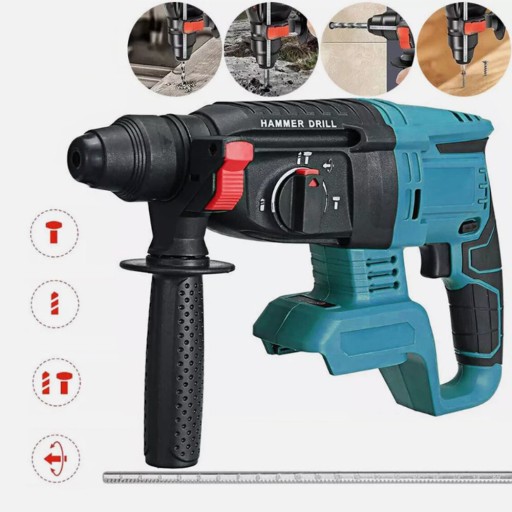 Cztery różne funkcje do wiercenia (nadaje się do drewna, stali itp.), dłutowania (nadaje się do betonu lub cegły), wiercenia udarowego (nadaje się do ciężkich prac) i regulacji położenia dłuta dostosowują się do różnych scenariuszy pracy, które są łatwe do przełączania. Możesz szybko przełączać funkcje za pomocą dwóch różnych przełączników. W porównaniu z konstrukcją przełącznika z funkcją, konstrukcja przełącznika dwufunkcyjnego może wydłużyć żywotność o 100%.