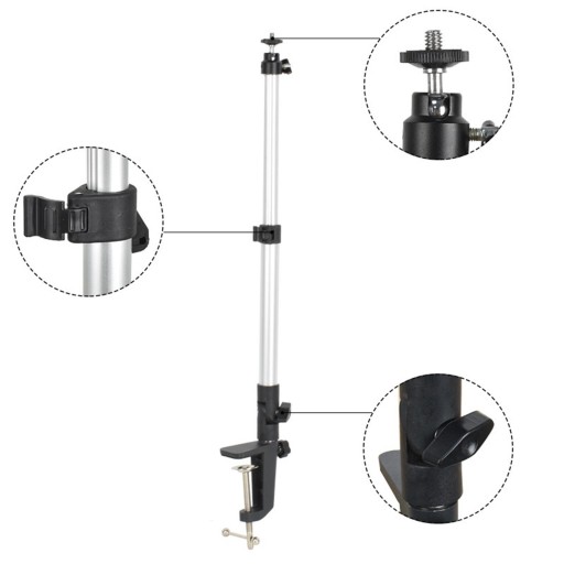 Szerokie zastosowanie: Stojak zaciskowy na biurko ze standardową śrubą 1/4 można zamontować do większości kamer i świateł, takich jak światło, lustrzanka cyfrowa, lampa wideo, kamera akcji, kamera wideo, oświetlenie panelowe, lustro itp.