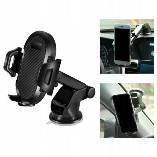 Regulowany uchwyt samochodowy na telefon na desce rozdzielczej Uchwyt na przednią szybę, zwalnianie jednym przyciskiem Czarny szary