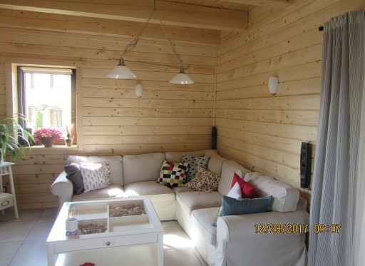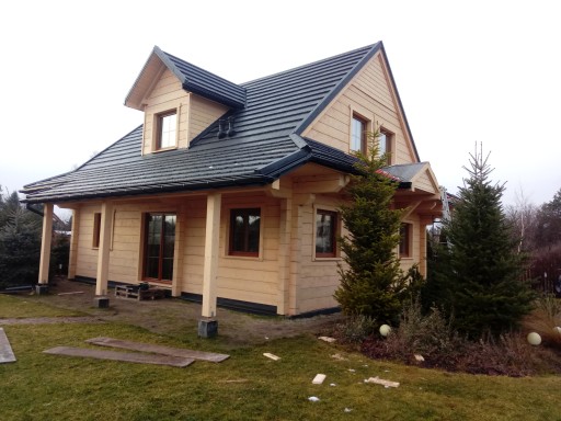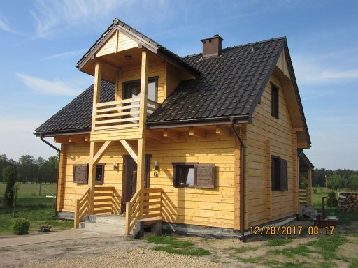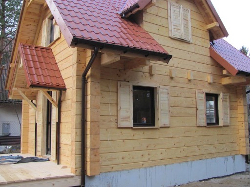- Ściany zewnętrzne wykonane z drewna świerkowego lub jodłowego