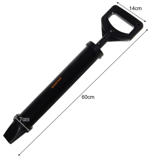 - SPECYFIKACJA - kolor: czarny; materiał: ABS + stal nierdzewna + guma + filc; ilość dysz 4; tłok: guma + filc; pojemność: 850 ml; wymiary: 60 x 14 cm; waga: 0,465 kg; waga w opakowaniu: 0,717 kg.
