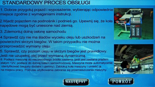 - Ekskluzywna funkcja uzupełniania nowego oleju ze zbiornika lub kanistra w celu sprawdzenia poziomu oleju